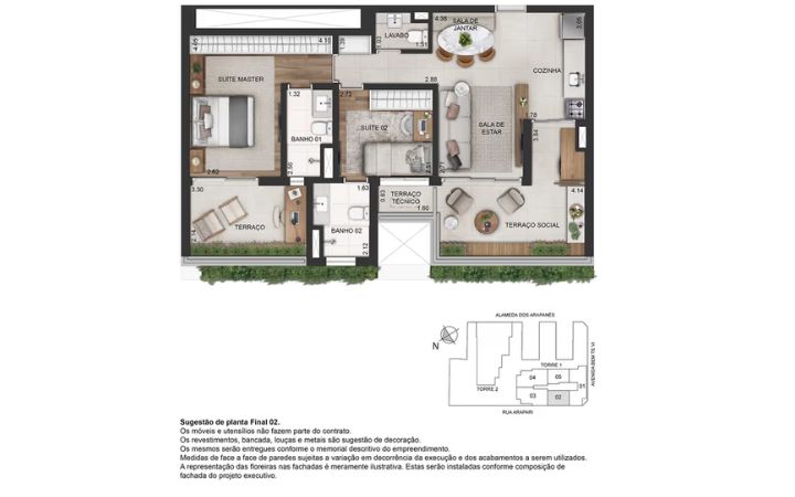 As unidades possuem plantas inteligentes, com integração entre ambientes, ampla iluminação natural, ventilação cruzada e acabamentos de alto padrão.